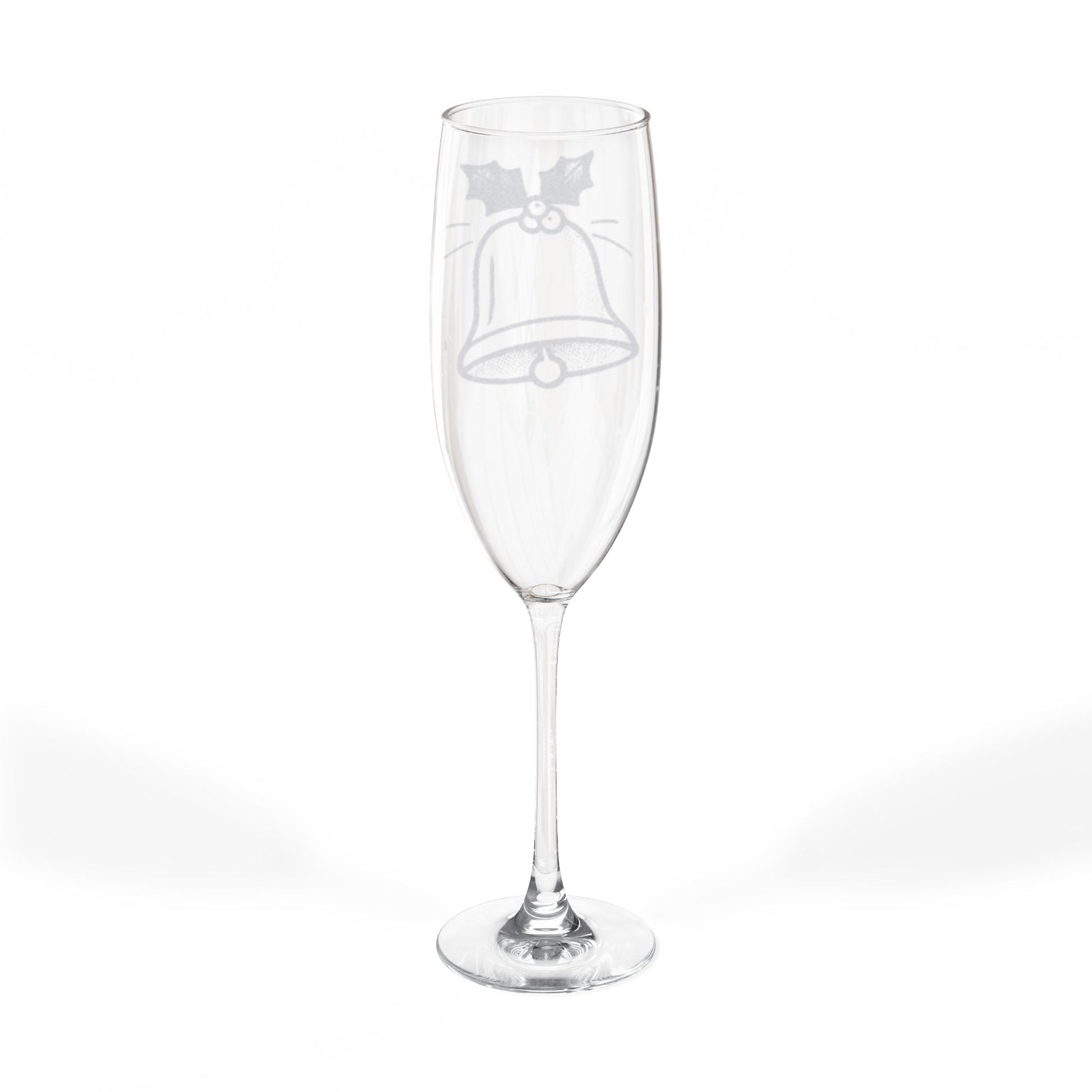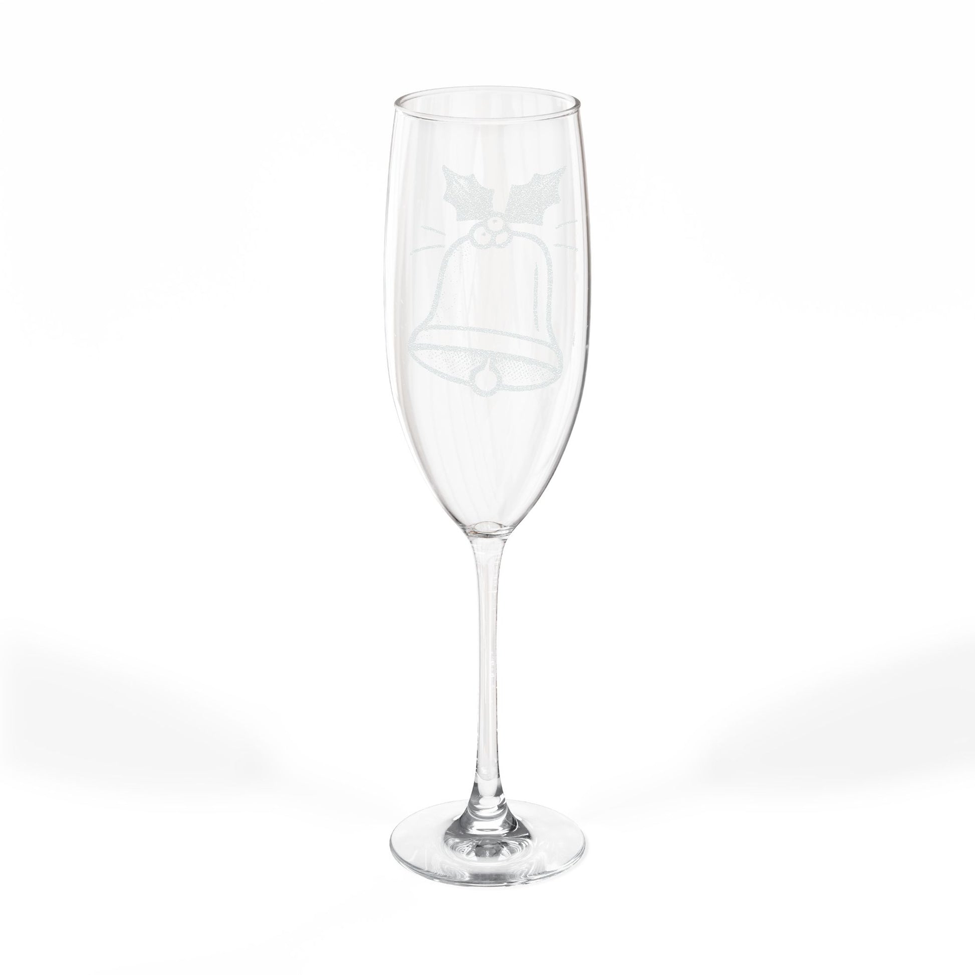 Engraved Champagne Flute – Holiday Bell Design, 8 oz