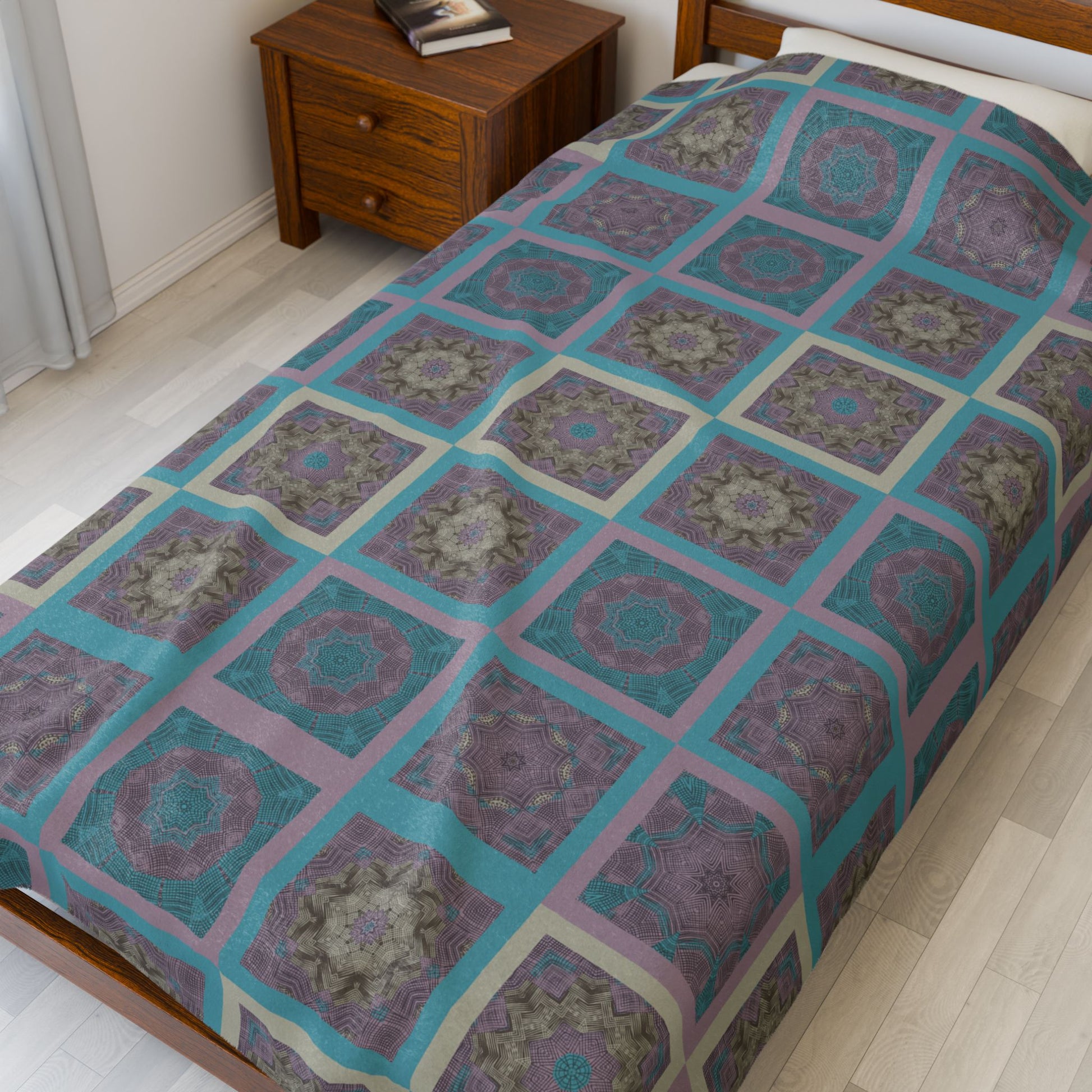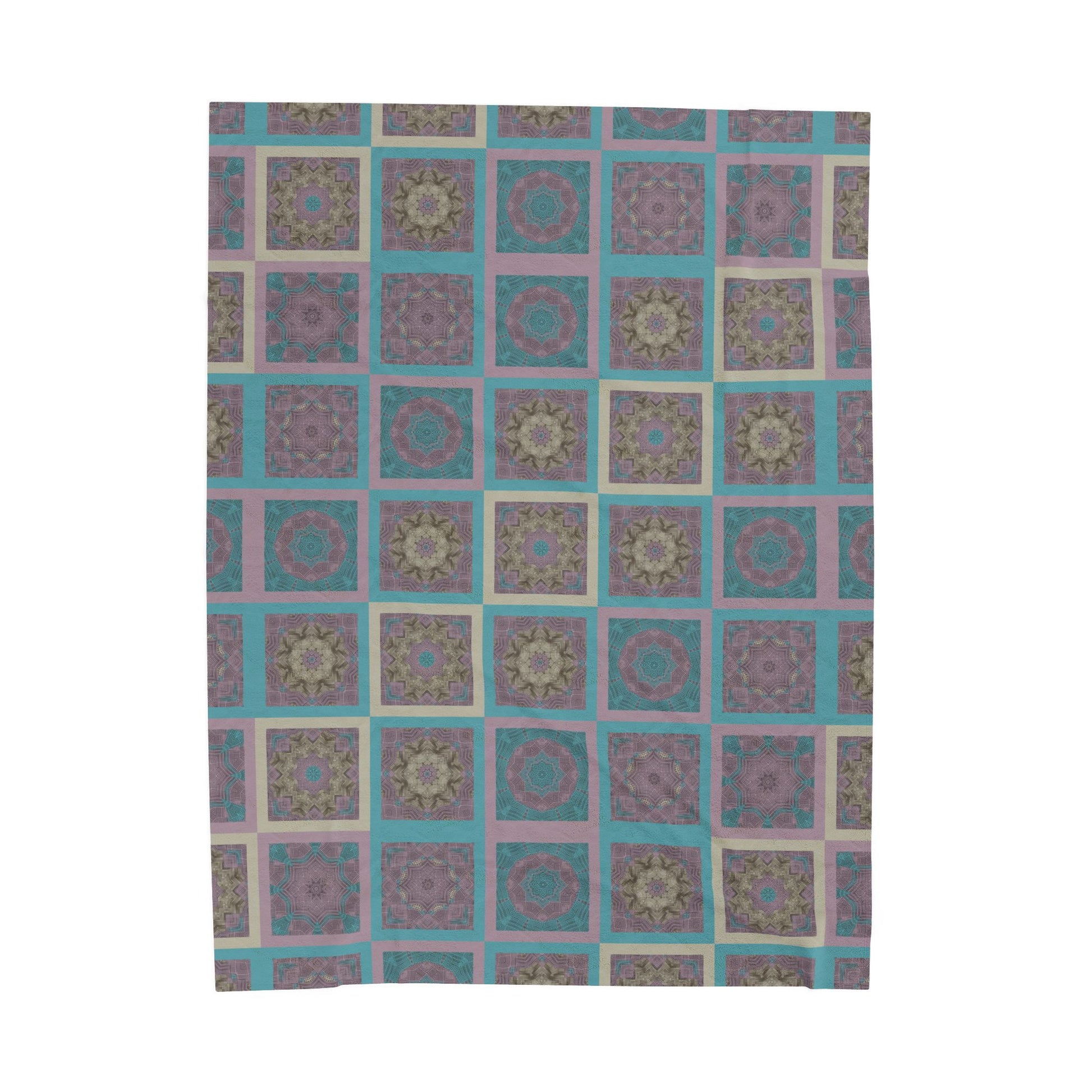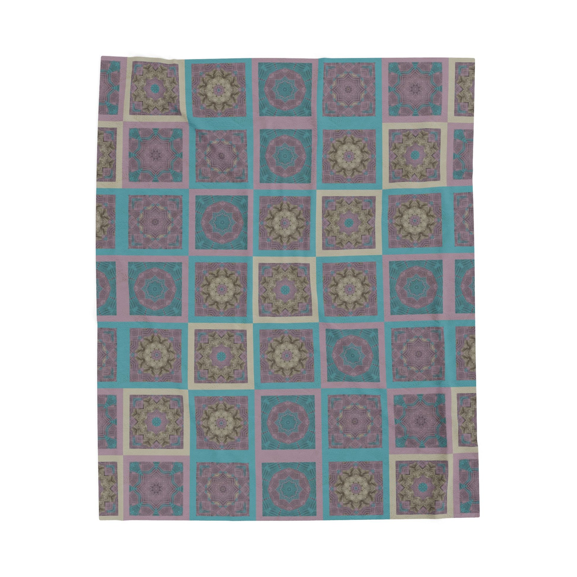 Turquoise Mosaic Velveteen Plush Blanket – Soft Geometric Boho Throw